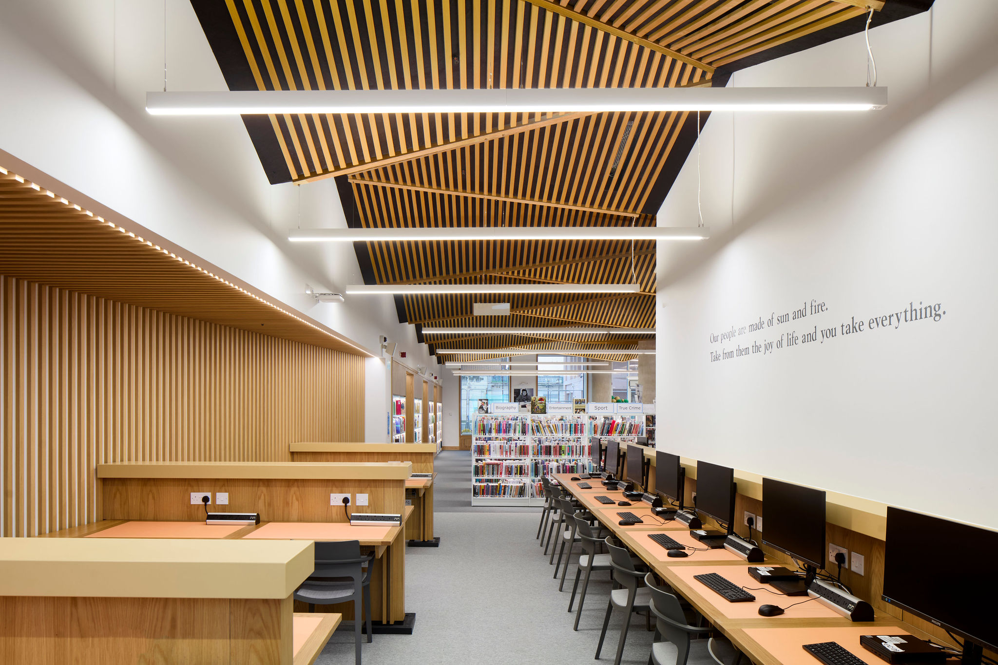 The new library provides traditional services such as book and DVD loans, newspapers and periodicals, public access PCs, printing and copying facilities, bookable meeting rooms, study spaces, free Wi-Fi and a self-service health kiosk. The library also includes an innovation space, which provides the opportunity to trial new programs and services.