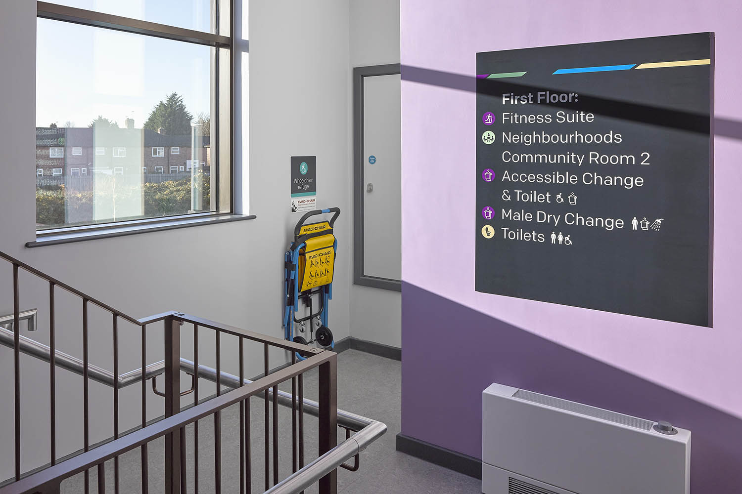 The emphasis was on access and convenience whilst at the same time creating a simple, calm environment by the careful use of colours and design principles which allowed for easy navigation throughout the building; particularly for those with dementia and other additional needs.
