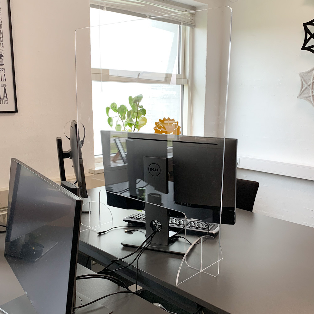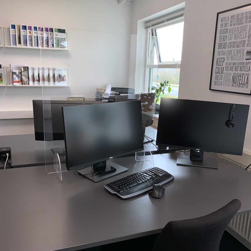 Stable hygiene protection screen in elegant design and 6 mm thick acrylic to protect yourself and your visitors from virus during an epidemic.