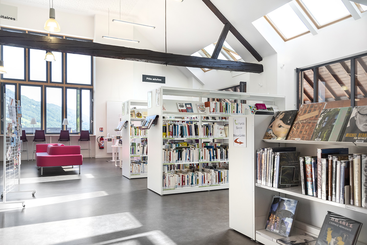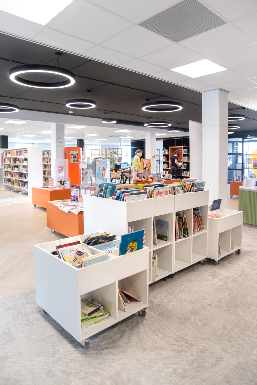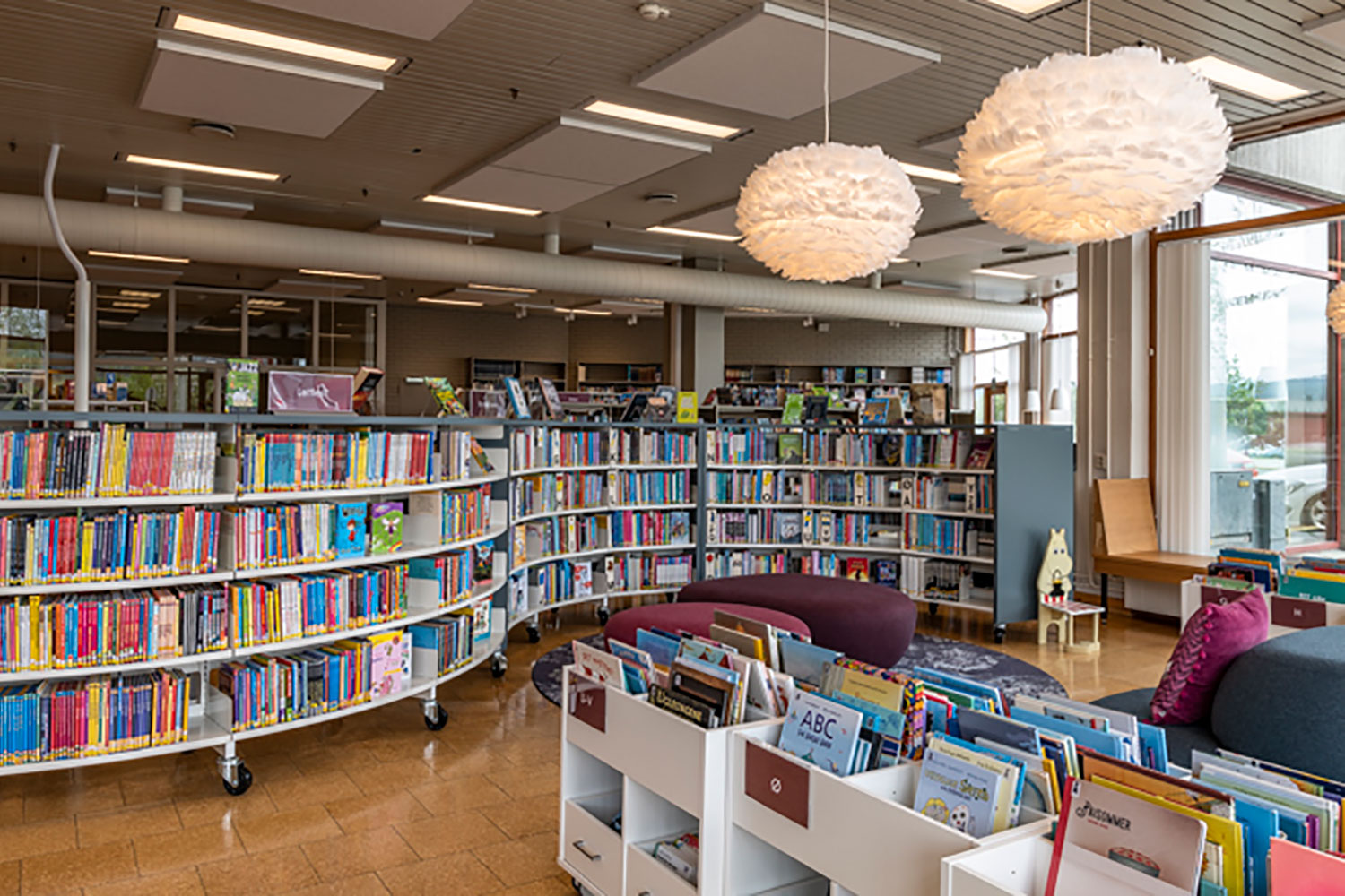 Sara is a functional yet modern browser that presents and stores all types of books and medias in an uncomplicated and visual manner. Depending on the height, the browser can fit both children and adults and be used in all areas of the library.