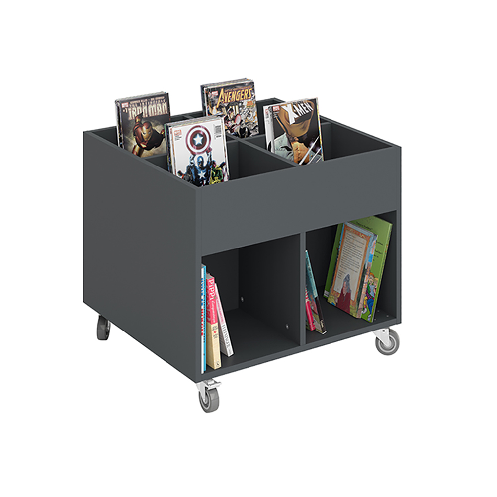 Sara Midi is a picture book browser with four display compartments at the top and four storage compartments underneath. Ideal for children.