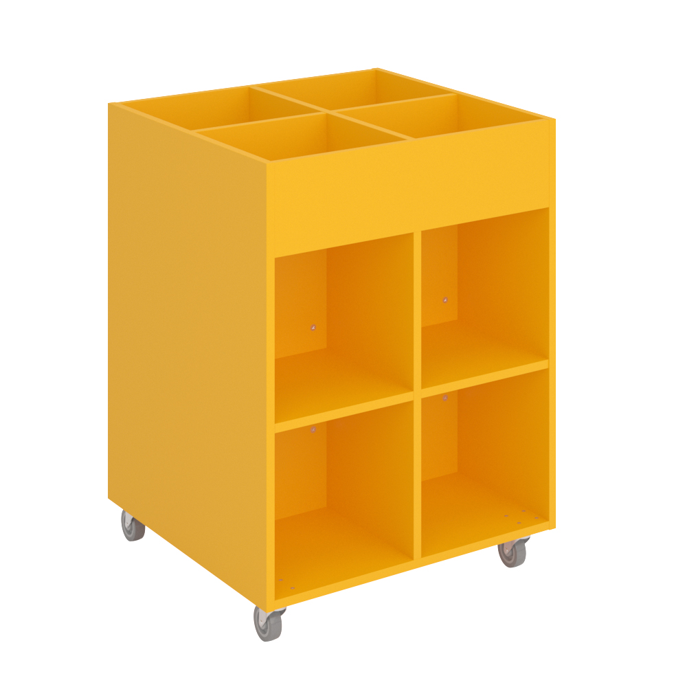 Sara Midi is a picture book browser with four display compartments at the top and four storage compartments underneath. Ideal for children.