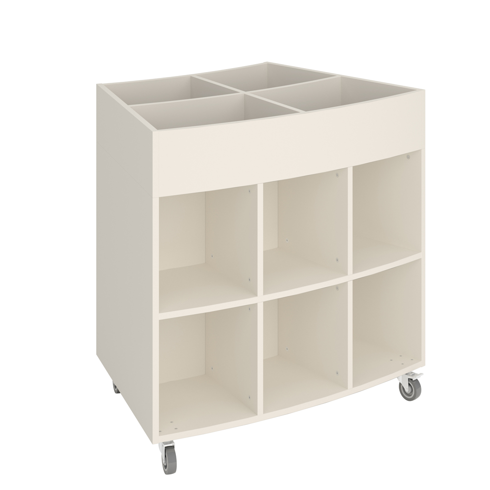 Sara Maxi is a book browser with four display compartments at the top and eight storage compartments underneath. Ideal for both children and adults.