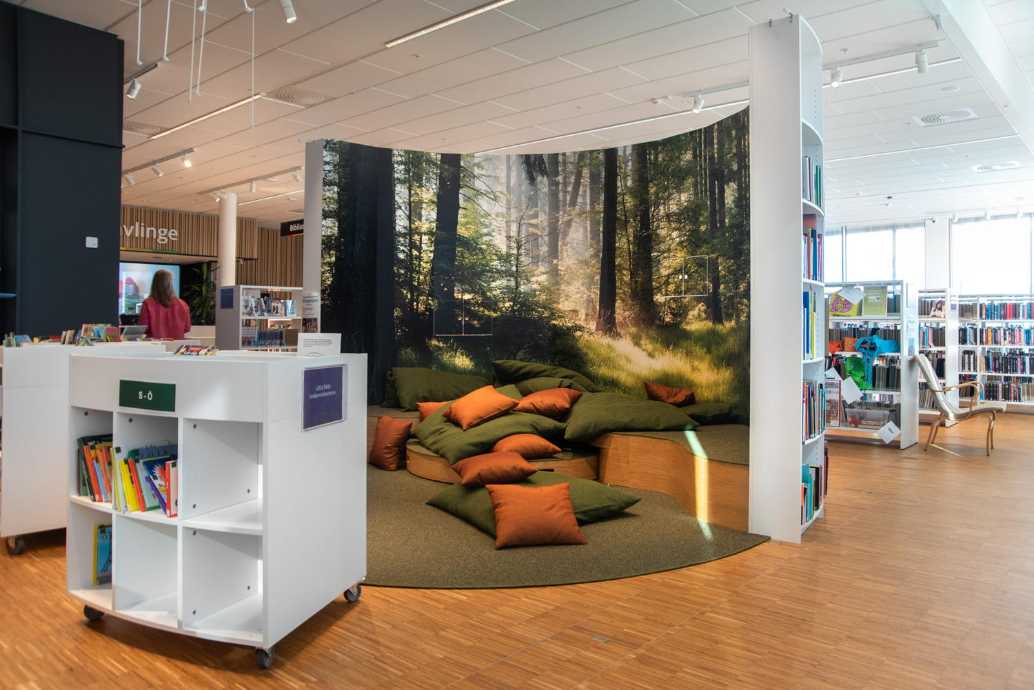 Sara is a functional yet modern browser that presents and stores all types of books and medias in an uncomplicated and visual manner. Depending on the height, the browser can fit both children and adults and be used in all areas of the library.
