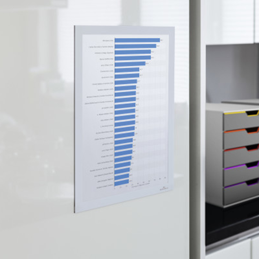 The self-adhesive magnetic frames (Duraframe®) attach easily on any smooth surface such as doors, windows, walls, end panels etc.