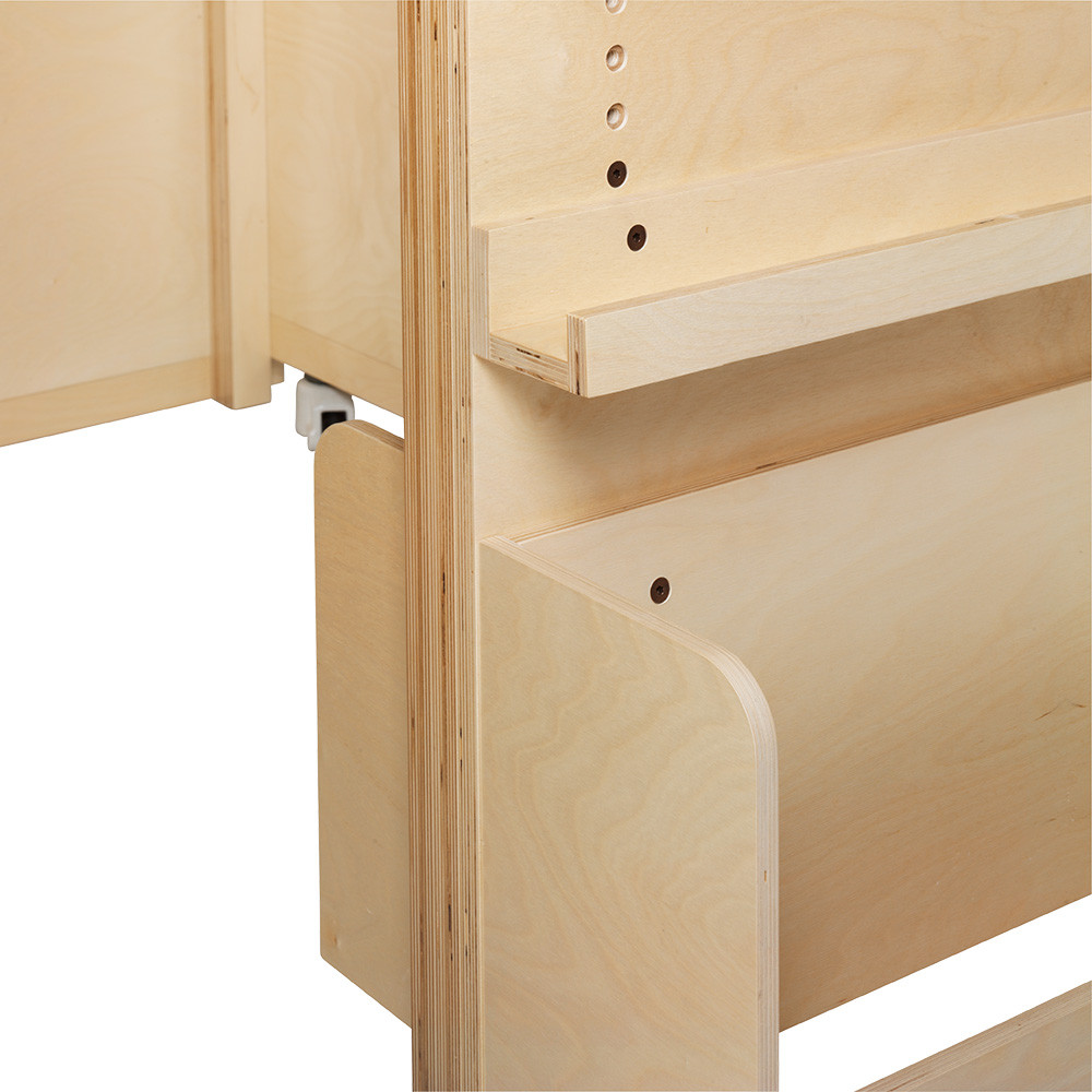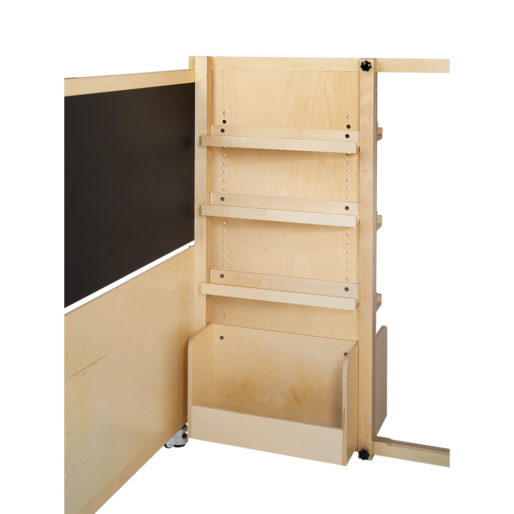 The shelves and compartments come in two different widths to fit the inside and outside of the rear wall element.