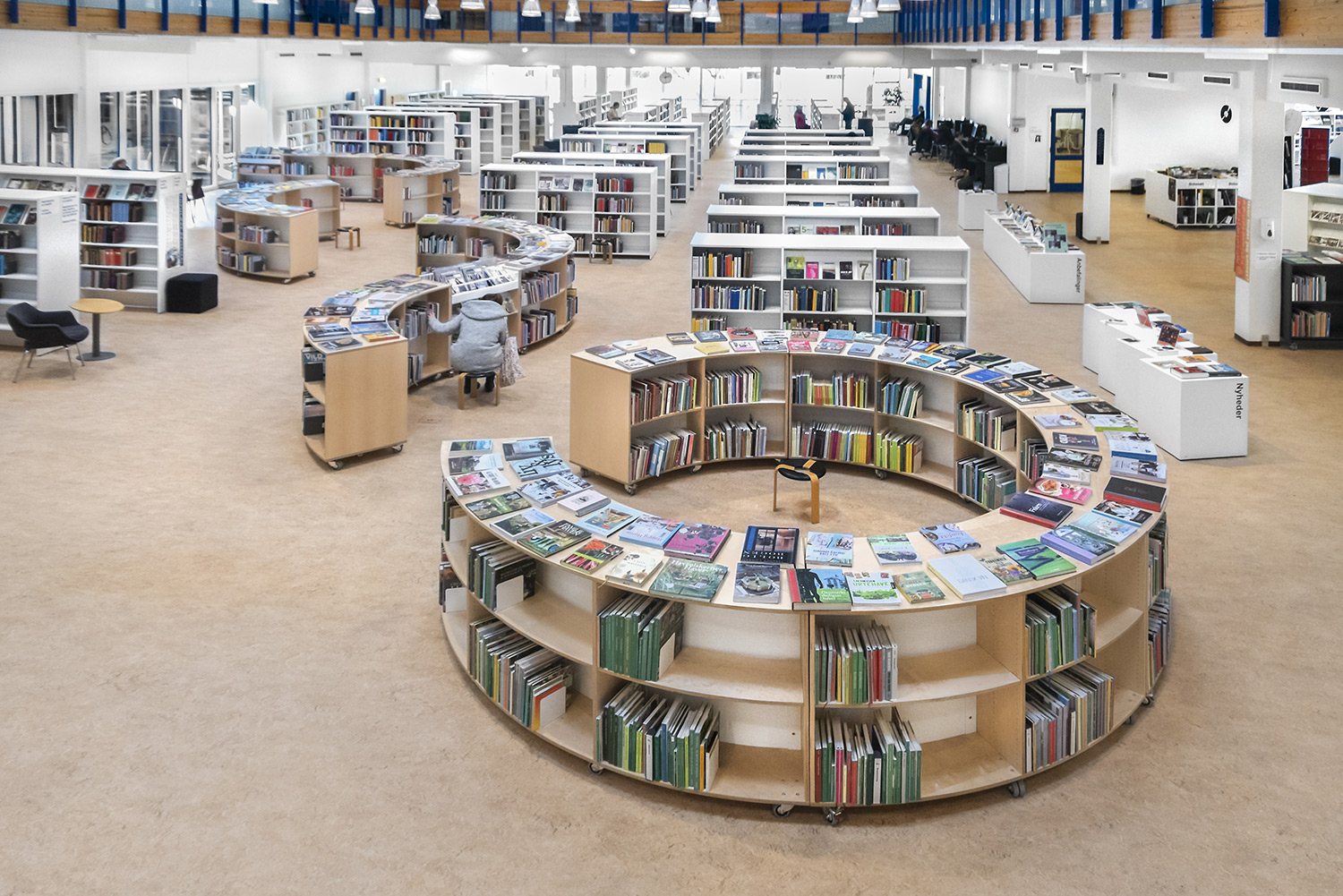 The Slimline/Frontline round shelving opens up for a whole new world of displaying and storing books. Create small reading or specialized zones by making almost complete circles, where library readers can hide away, or create open waves running through the library.