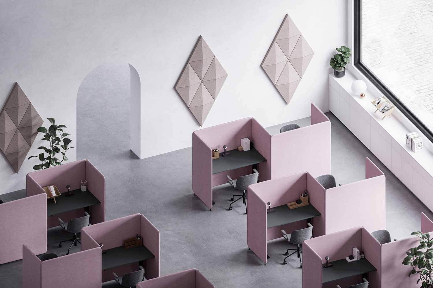 A functional, flexible and noise-absorbing modular partition system - a room divider and noise absorber at the same time. In high noise working areas, Softline provides maximum noise absorption (noise class A).