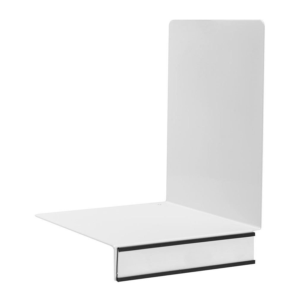 The edge that holds the book support in place on the shelf can be used for signage.