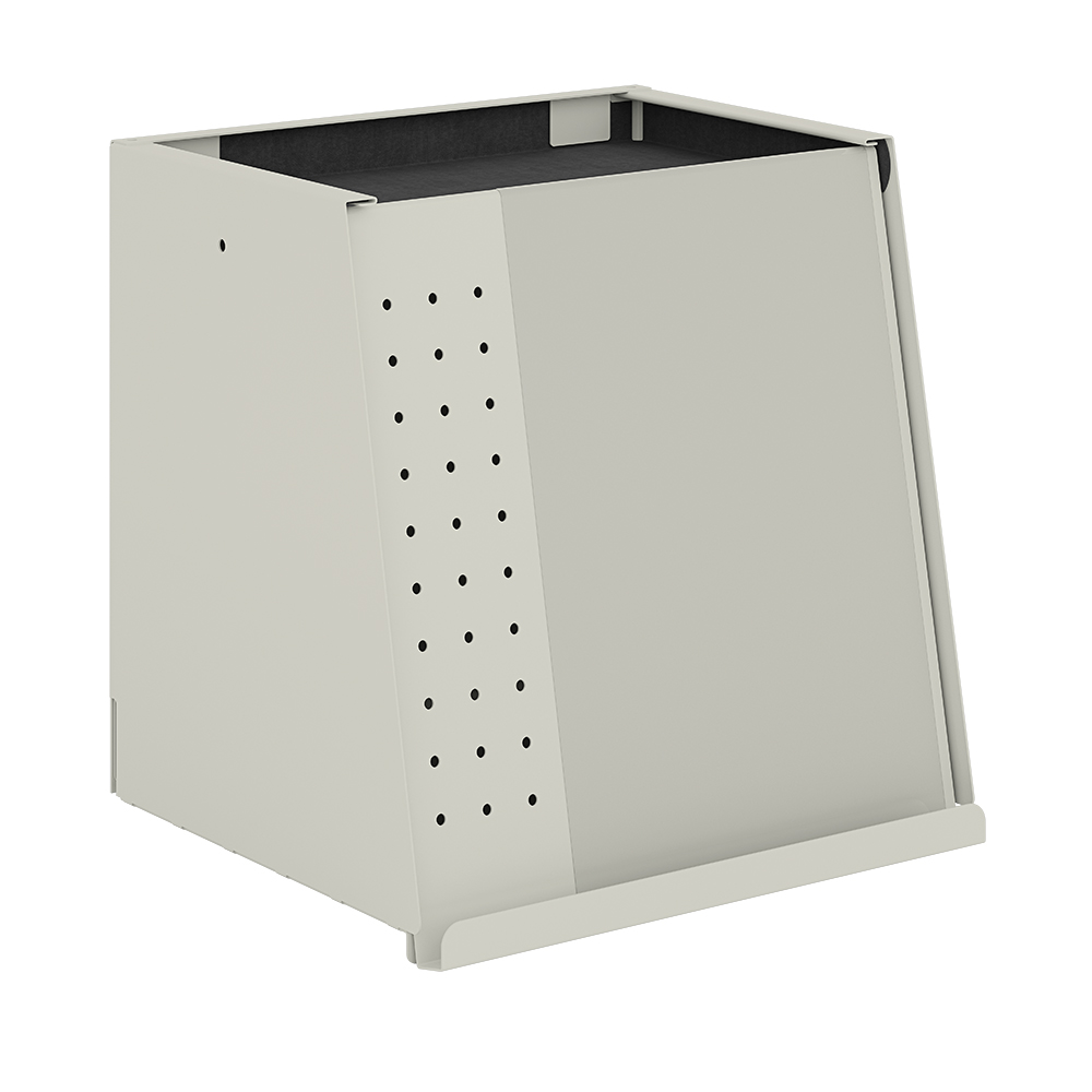 Magazine box compartment for shelves, depth up to 250 mm. Displays magazines with cover page facing the visitor in an easy read angle.