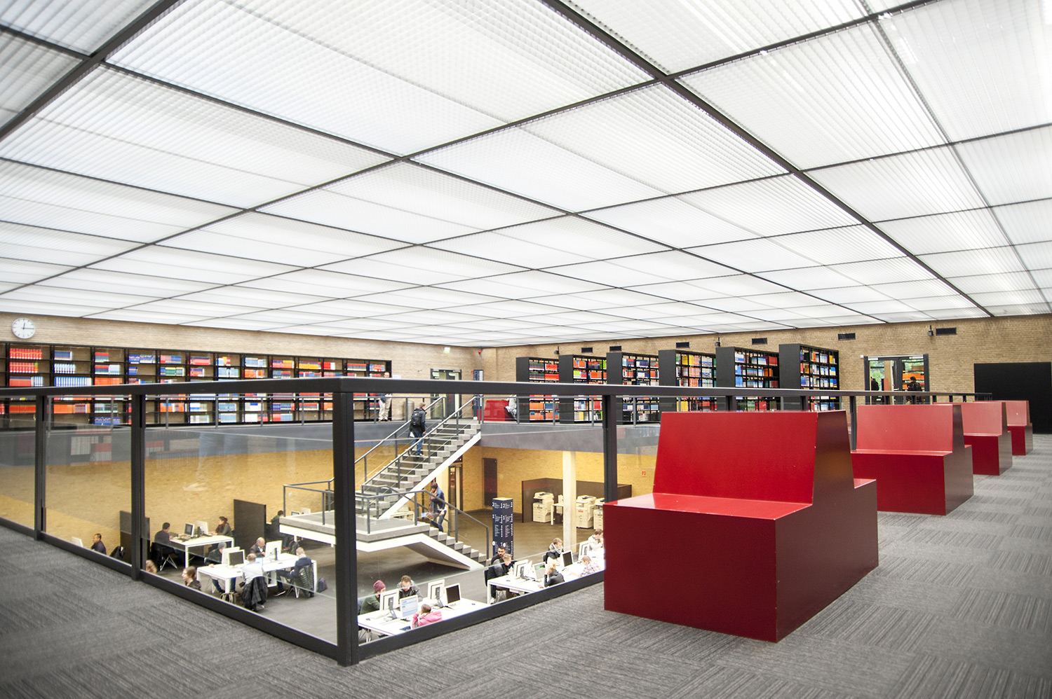 The Uniflex steel shelving is available in two variations – single- and double-sided, both with the option of increasing the height of the bays (from standard 2250 mm up to 3675m m in total). Shelves are available in both steel and wood and several functions can be added to create the right functionality for your library.