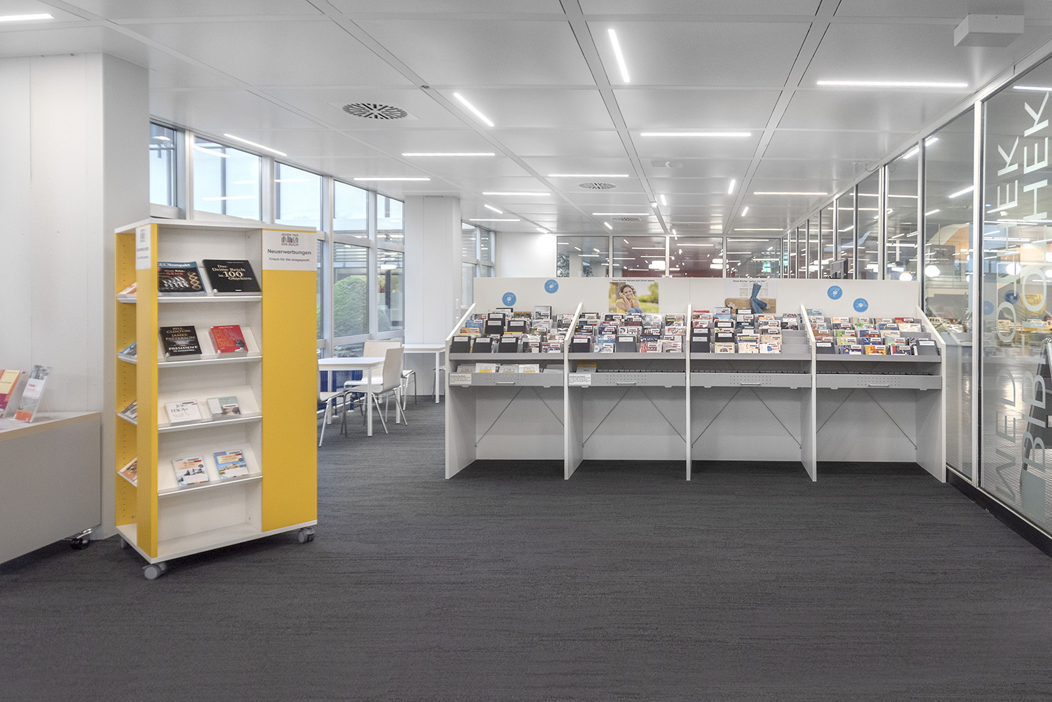 The sturdy shelving system with 30 x 30 mm perforated square tubing is ideally suited for use in high volume libraries as well as in public and school libraries. The design of the shelving systems with its 25 mm grid module allows for easy assembly and adjustment without use of specific tools. The bays are pre-fitted with a multifunctional C profile to allow for easy insertion of top and bottom shelf.