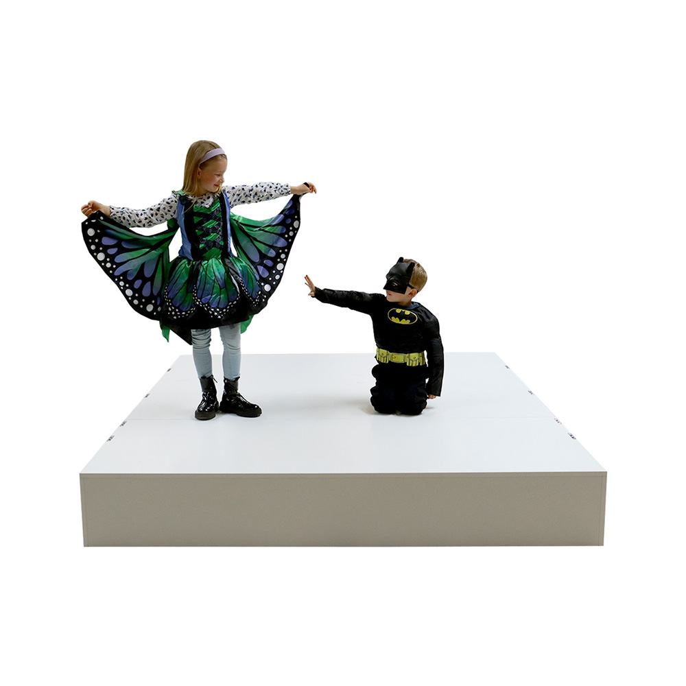 The seating podium and stage feature a strong and robust construction and can be used in all public libraries as well as cultural and educational institutions for children and adults of all ages.